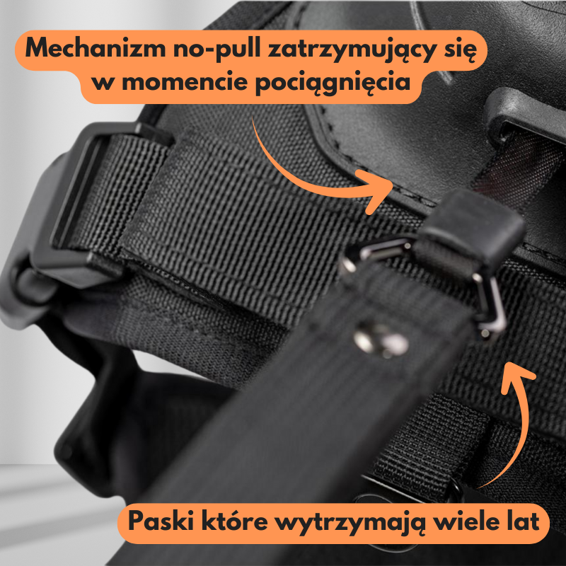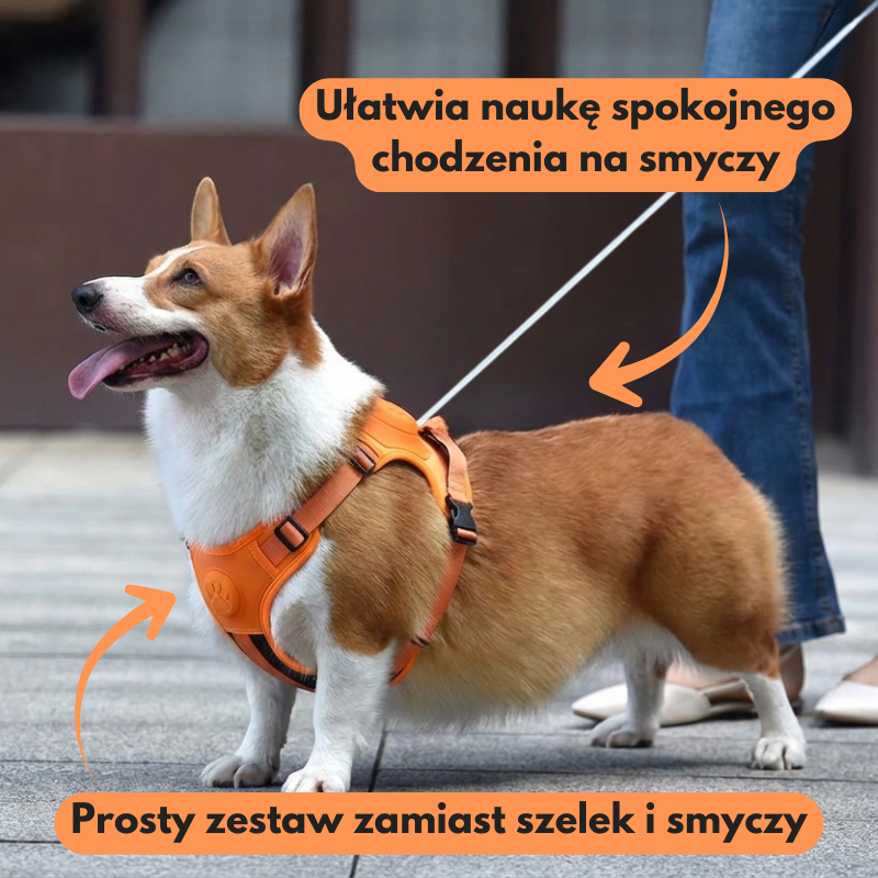 Leasho równomiernie rozkłada nacisk na ciało psa, dzięki czemu nie obciąża szyi ani klatki piersiowej. Pies czuje się swobodnie nawet podczas dłuższych spacerów.
