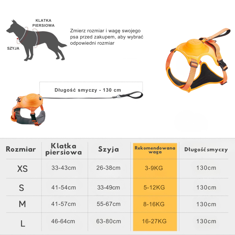 Tak. Leasho zostało zaprojektowane z myślą o aktywnych psach – stabilnie trzyma się na ciele i zapewnia kontrolę nawet przy nagłych ruchach. Nie zalecamy jednak jego stosowania przy bardzo dużych psach (powyżej 30 kg).